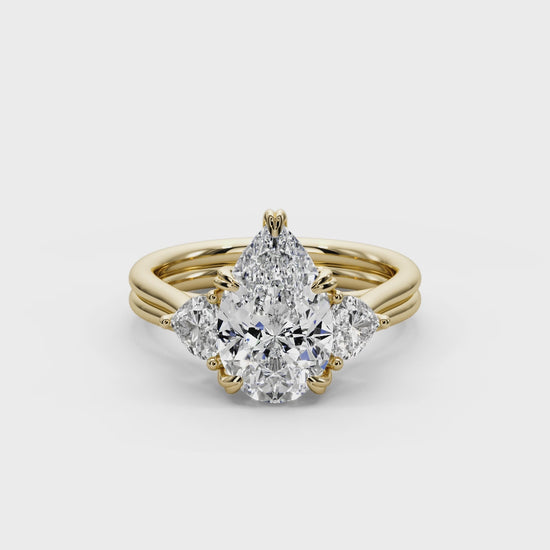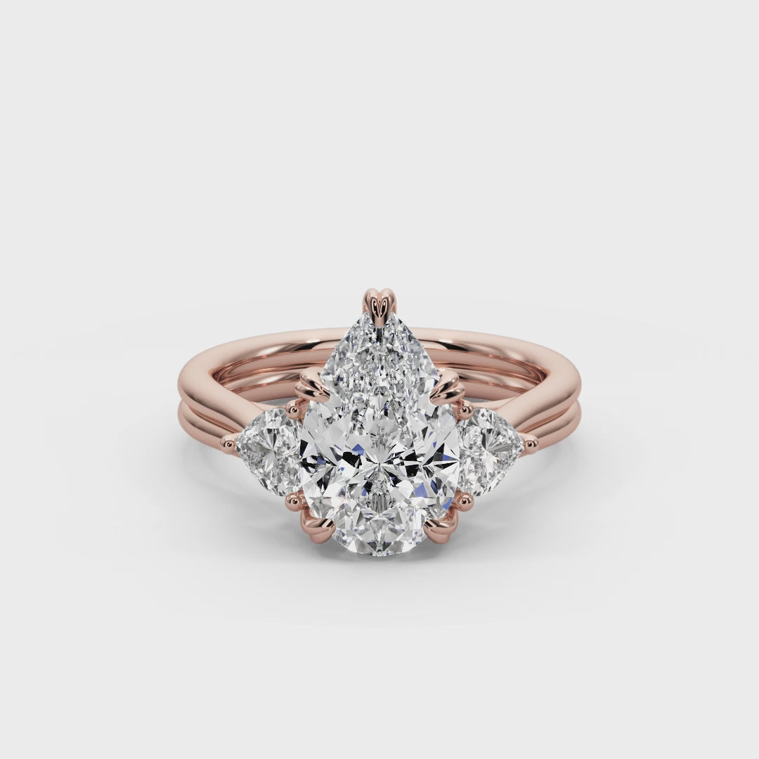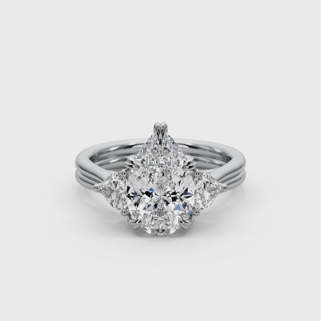 Handcrafted in solid 14K Yellow, White, Rose Gold, or Platinum, this elegant ring features a stunning 2.00 carat F color, VS2 clarity pear-cut center diamond, accented by 1.00 carat total weight side diamonds of matching F color and VS2 clarity. [Total 3.00CT]. With its symbolic meaning of romance, individuality, and graceful elegance, the pear cut is cherished for its unique teardrop shape that blends classic and modern style. This ring is a perfect choice for an engagement—beautifully crafted in diamond and gold
